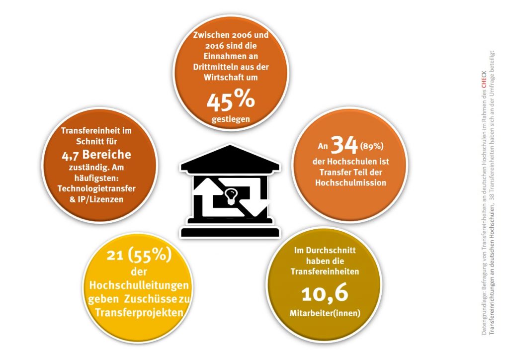 Eine Auswertung, für die rund 40 Transferstellen an deutschen Hochschulen befragt wurden, bietet nun erstmals einen Einblick in Arbeit, Strukturen und Mittel der Einheiten.