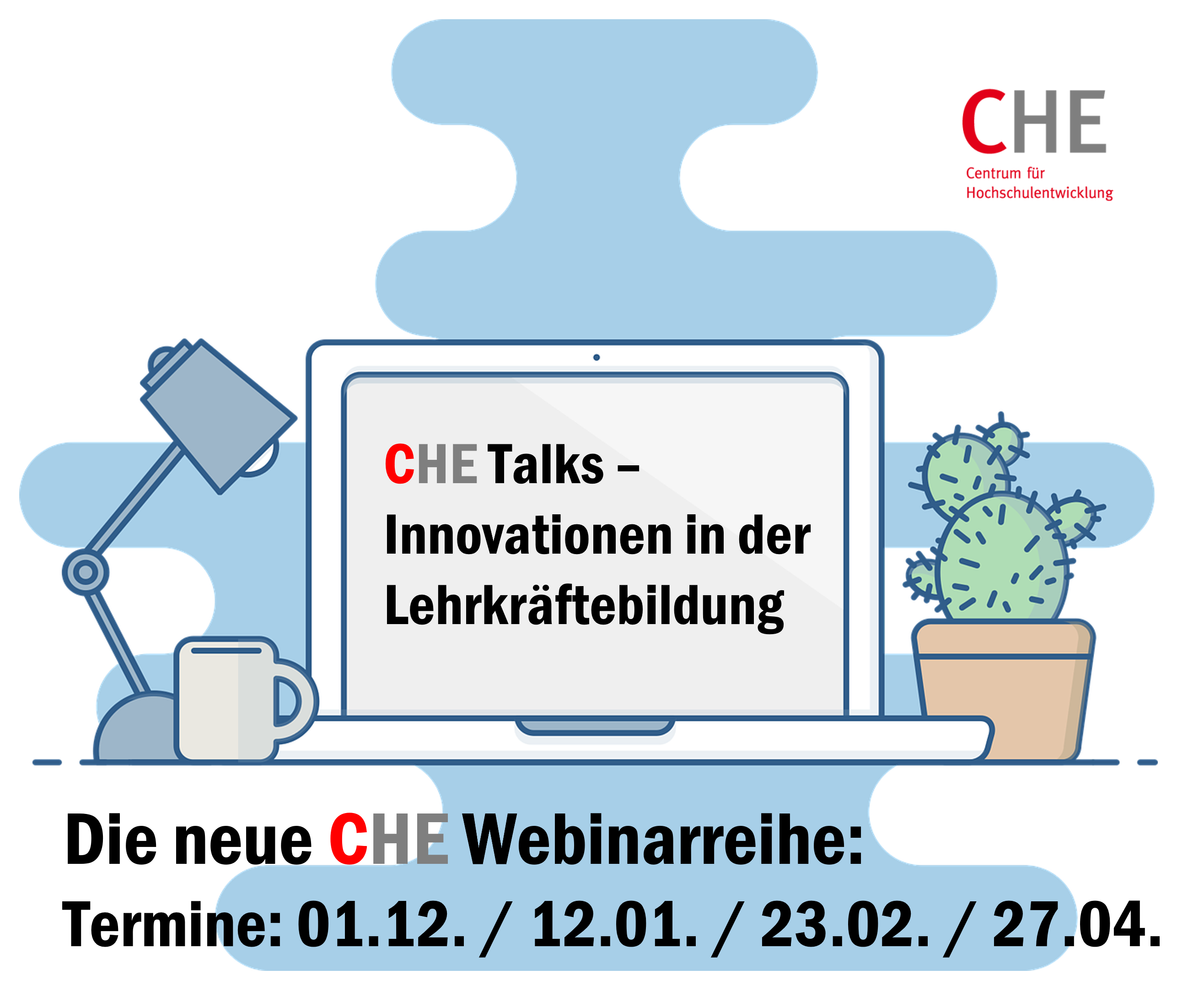 Bild: Pixabay | Montage: CHEPraxisnahe Impulse und Diskussionen – in der neuen Webinar-Reihe „CHE Talks“ bieten hochkarätige Referent*innen allen Interessierten anregende Einblicke und Handlungsempfehlungen. In jeweils einstündigen, kostenfreien Webinaren zur Mittagszeit werden aktuelle Herausforderungen, praktische Lösungsansätze und Beispiele guter Praxis vorgestellt und diskutiert.