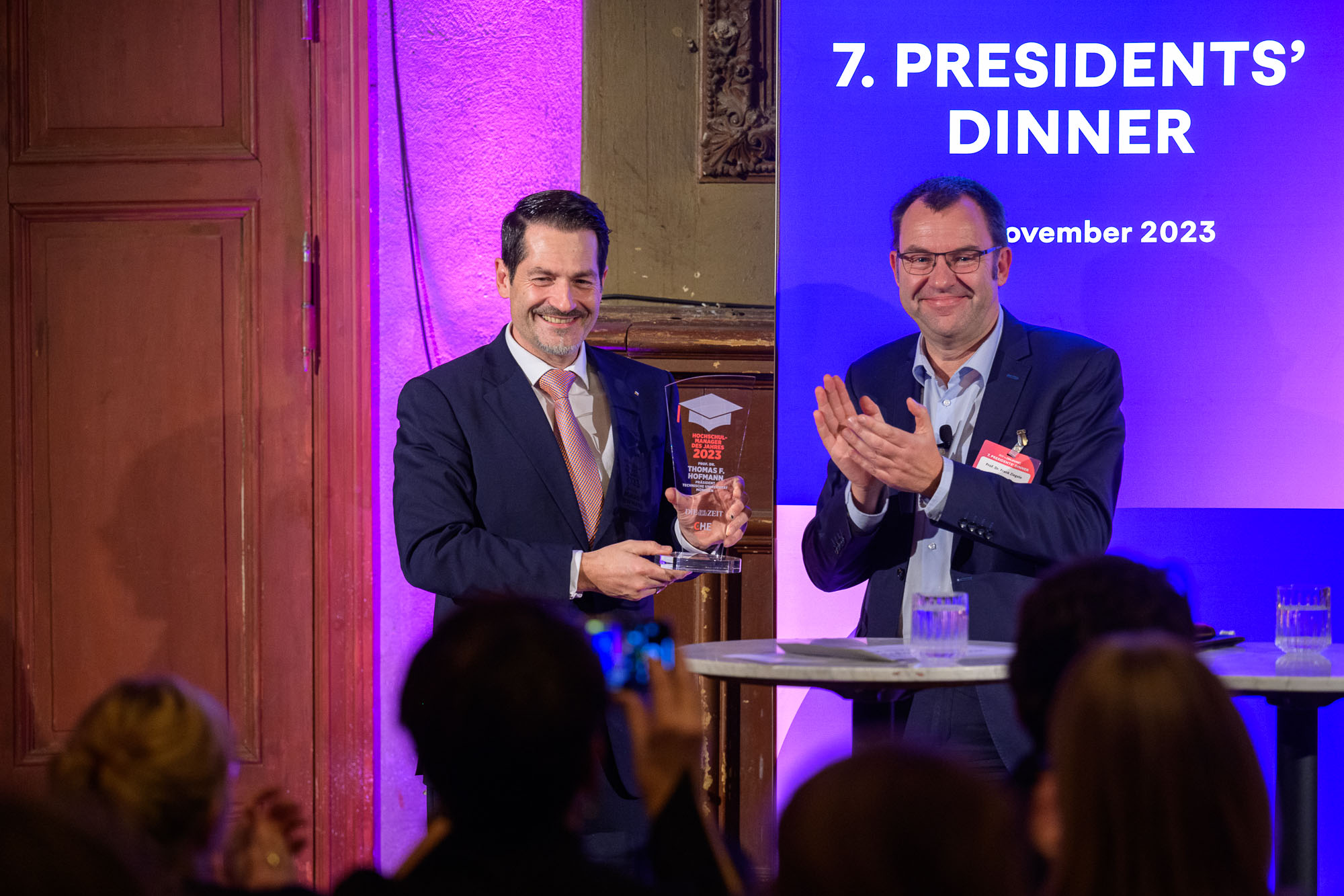 Die Jury vergab den Preis „Hochschulmanager*in des Jahres 2023“ an Thomas F. Hofmann, denn sie ist überzeugt: Es ist grundsätzlich nicht einfach, den Standard einer erfolgreichen Universität nach einem Führungswechsel nicht nur zu halten, sondern sie maßgeblich weiterzuentwickeln und vieles neu zu interpretieren. Aber er hat es geschafft. In diesem Jahr beeindruckte Thomas F. Hofmann die Jury mit seinem Engagement für tiefgreifende innere Reformen der TUM: „Thomas F. Hofmann hat für eine effektive Führung gesorgt, die Fakultäten umstrukturiert und in interdisziplinäre Schools transformiert. Mit beeindruckendem Einsatz hat er das Tenure Track Konzept maßgeblich vorangetrieben.“.