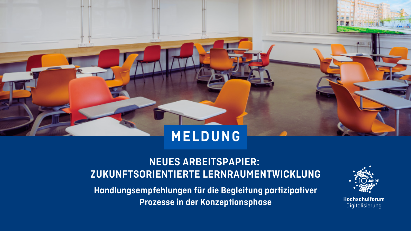 Das aktuelle Arbeitspapier des Hochschulforum Digitalisierung bündelt Ansätze sowie Praxiserfahrungen von und für Lernraumentwickler*innen. Es richtet sich an Personen, die in den Prozess der zukunftsorientierten Lernraumkonzeption einsteigen oder bereits über erste Erfahrungen verfügen.