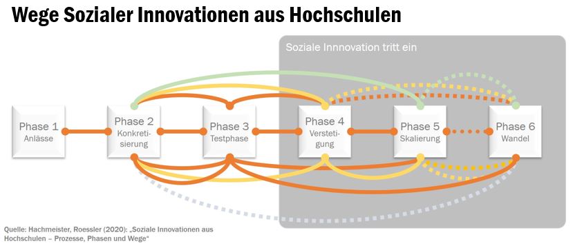 The study entitled “Soziale Innovationen aus Hochschulen – Prozesse, Phasen und Wege” (Social innovation driven by higher education institutions – processes, phases and pathways) is the second publication issued within the WISIH project. The analysis was based on interviews with 25 professors from the fields of Nursing Science or Occupational, Organisational and Business Psychology between May and August 2020. The study was written by Isabel Roessler and Cort-Denis Hachmeister.