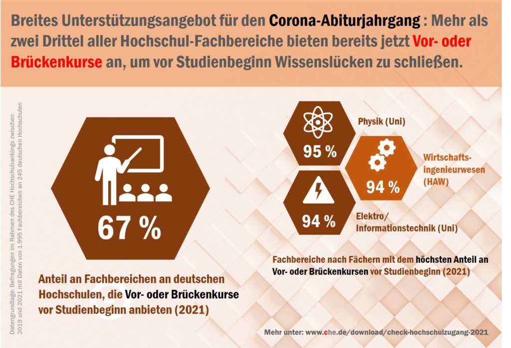 For years now, so-called bridge or preparatory courses have been offered to enable first-year students to close any knowledge gaps they may have before embarking on their degree programme. It could well be that there will be a lot of demand for such courses next winter semester. After all, the 2021 intake of Abitur cohorts was hit particularly hard by the restrictions caused by the coronavirus pandemic.