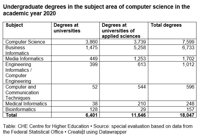 Interestingly, computer science is the second most popular subject in Germany (around 138,000 students), trailing only business administration. And yet the current number of newly qualified IT graduates is nowhere near enough to meet the demand for skilled professionals.